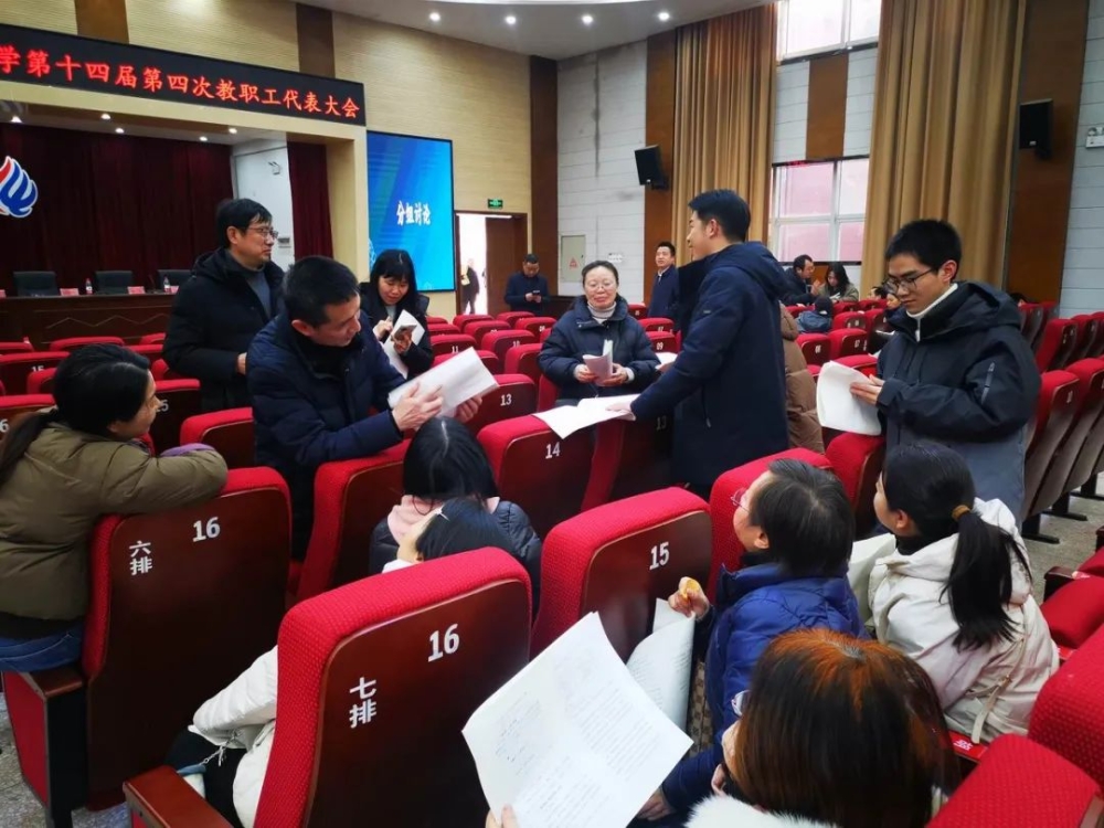 下午14时30分,副校长梅志辉、许晓文对三个制度进行了补充说明,全体代表分为四个小组对三个制度进行了讨论、审议,并由各组负责人形成统一意见交由学校党委班子研究讨论,形成了最终报告。随后,全体代表听取了党委书记陶乐关于职工代表讨论、审议情况的报告,并通过举手表决,全体通过了三个制度。