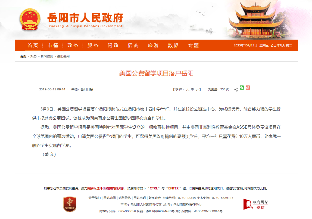 为促进岳阳学校的国际合作,在岳阳市教育体育局国际交流合作科同意下,公费留学由岳阳欧美亚对外交流公司主办。本项目成立以来,受到岳阳地区的家长和学生的高度认可和欢迎。